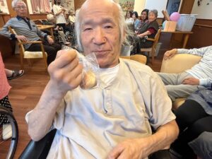 2025.09.15 こころとからだ東湊 敬老の日のお祝い 日頃の感謝を込めまして、美味しい食事と和菓子を召し上がって頂きました!皆様いつまでもお元気でいてくださいね!和菓子は江久庵の「金箔入りのカステラ」です!美味しいと評判でした!