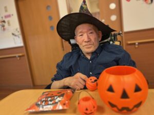 2025.11.15 加島Ⅱ 10月 秋祭り ハロウィン お神輿が 施設に来て下さり。皆でピース((笑) 🎃ハロウィンでは ホットケーキを皆様と一緒に作りました「おかわり~」と 沢山召し上がられました((笑)