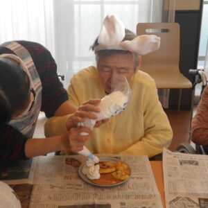 2025.11.15 加島Ⅱ 10月 秋祭り ハロウィン お神輿が 施設に来て下さり。皆でピース((笑) 🎃ハロウィンでは ホットケーキを皆様と一緒に作りました「おかわり~」と 沢山召し上がられました((笑)
